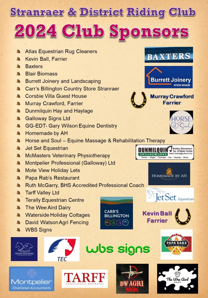 Stranraer and District Riding Club is grateful for the support from the under-noted businesses for 2024: