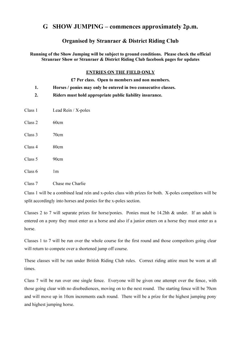 Show Jumping classes for Stranraer Show.